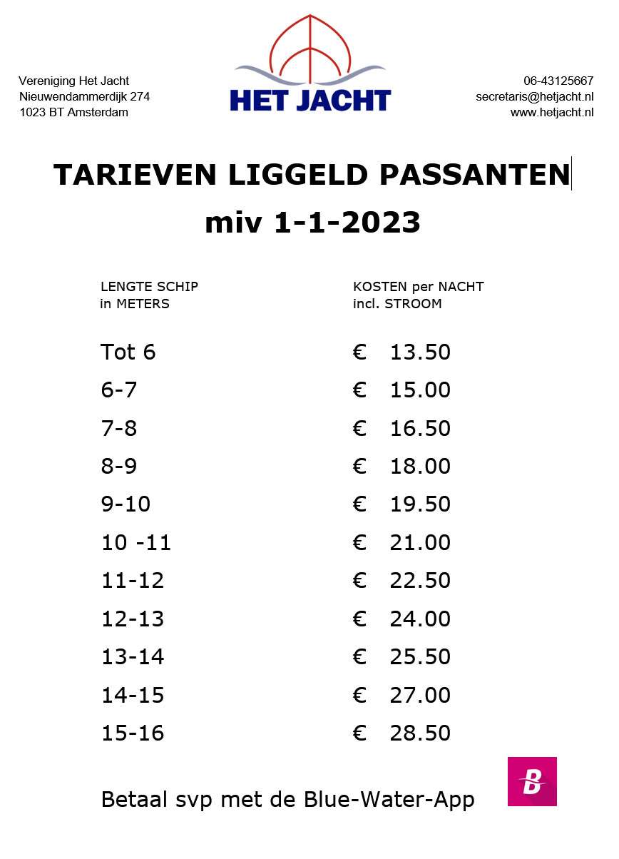 Afrekenen doet u met de vrij te downloaden Blue Water App op uw smartphone. Zonodig assisteert de havenmeester of diens vervanger.